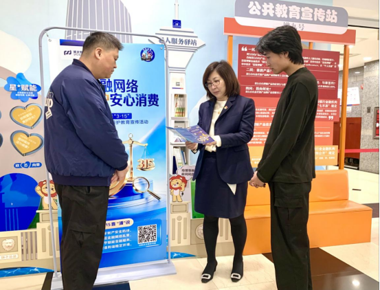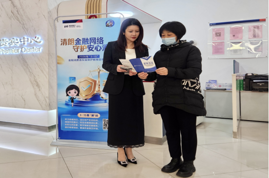 活动期间,浦发银行天津分行党委委员、副行长吴婷,浦发银行天津分行党委委员、副行长刘静瑶,分别走访核心基层网点,化身“消保宣传员”,向到访客户宣传金融知识。与客户面对面交流,主动了解客户在金融服务、产品使用、业务办理等方面的实际需求,认真倾听消费者心声。同时,实地查看网点消保宣传阵地建设、便民服务设施配备及一线服务开展情况,详细了解网点在金融知识普及、消费者投诉处理、重点人群服务等方面的工作举措与成效。在行领导的带领下,工作人员以厅堂为主阵地,通过悬挂宣传横幅、摆放宣传易拉宝、滚动播放宣教海报、设立咨询专岗等形式,向客户普及金融消费者八项基本权利,讲解防范电信网络诈骗、识别非法集资、保护个人信息、理性投资理财、维护征信记录等重点内容,用真实案例拆解“高收益理财”“代办信用卡”“冒充客服退款”等常见骗局,提醒群众“不轻信、不透露、不转账”。同时,行领导认真听取基层员工关于消保服务、客户需求、业务痛点的意见建议,现场督导服务流程优化与风险防控落地,强调要将消保工作融入日常经营、嵌入服务全流程,以更有温度、更有力度的金融服务守护群众“钱袋子”。