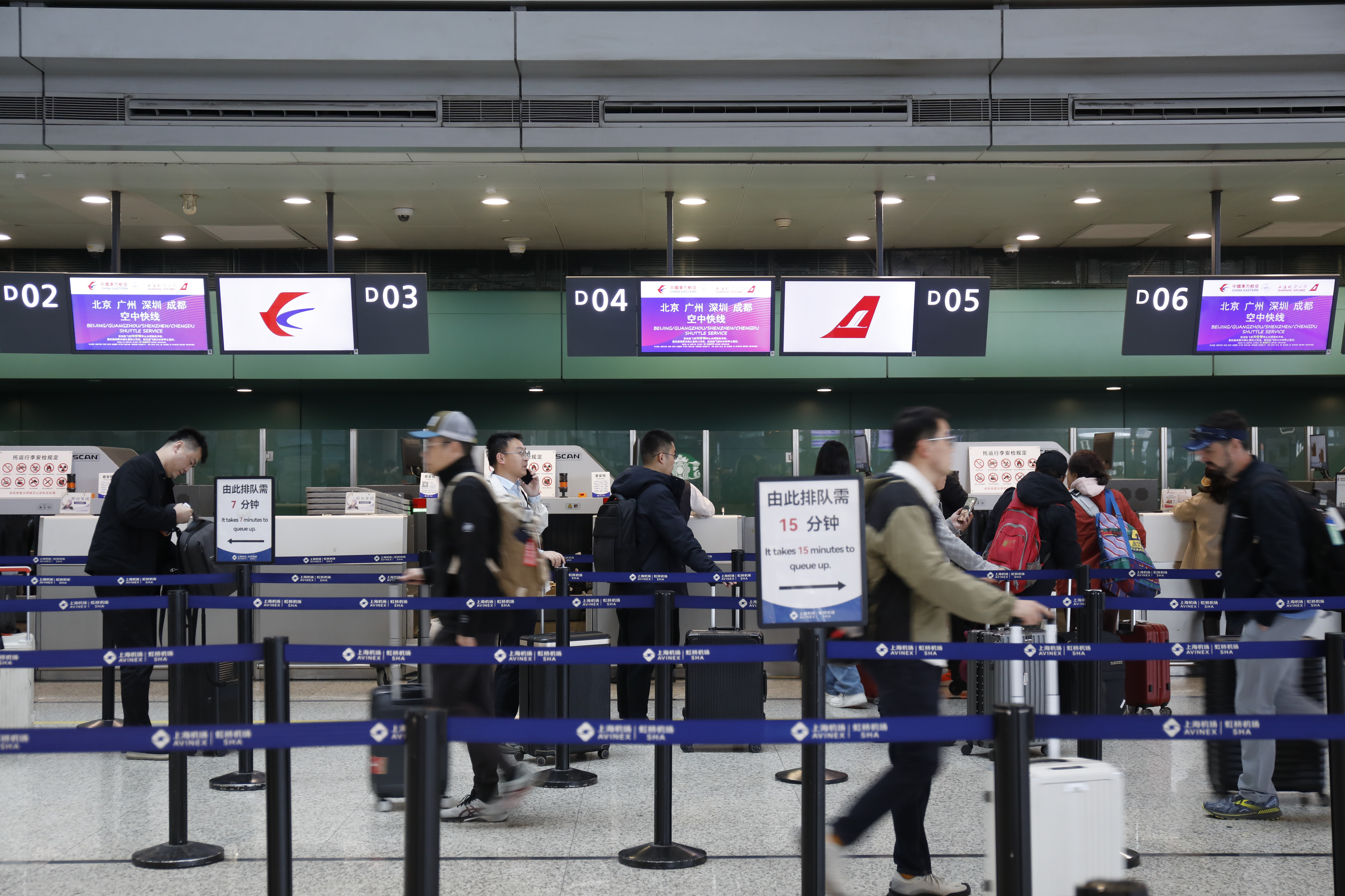 以上海虹桥和浦东机场为例,东航两场日均始发航班预计将突破510班次,同比增长2.4%。其中,上海浦东机场周始发国际地区航班超730班,枢纽通达水平进一步提升。